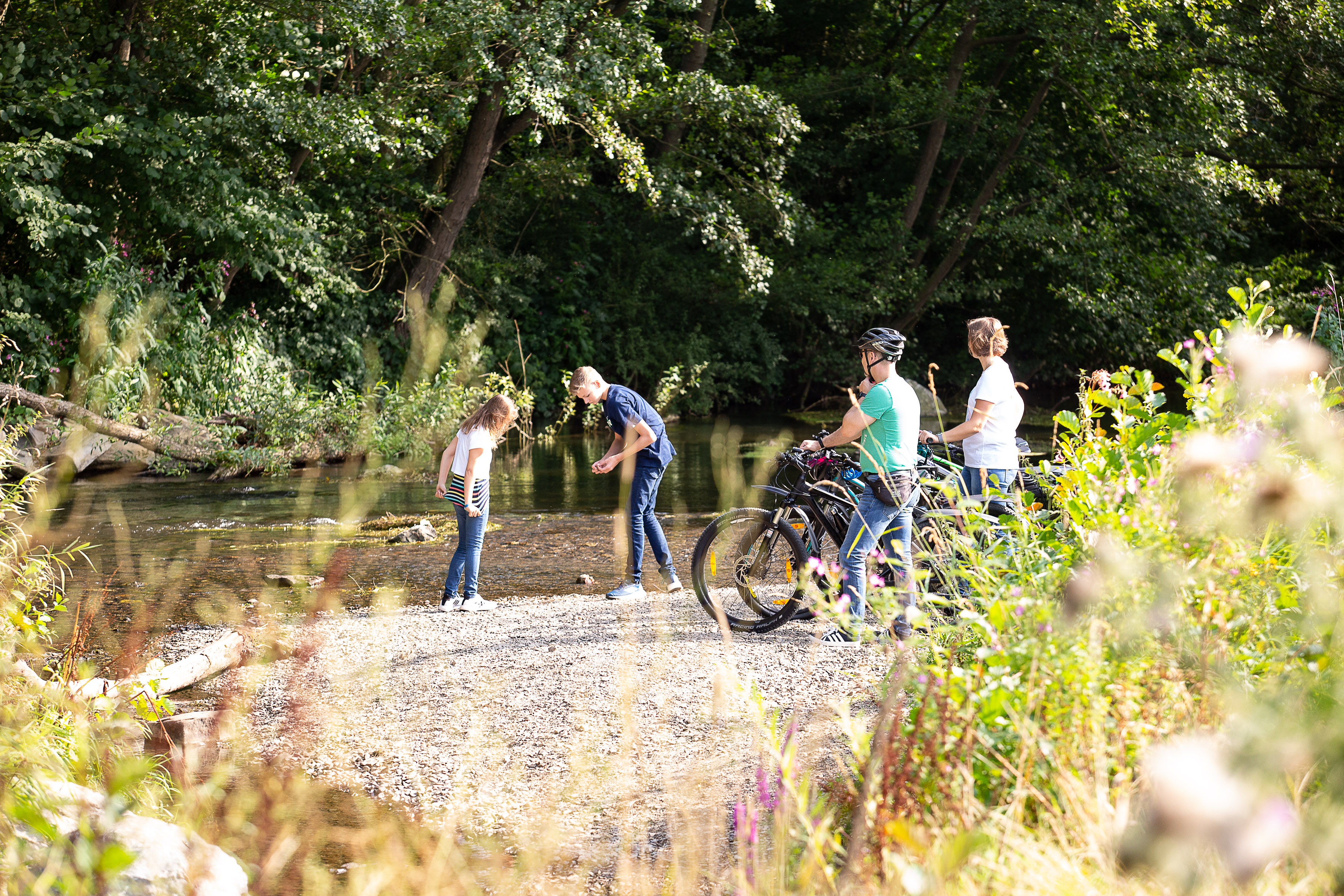 Immer am Fluss entlang: Mit der Familie auf der ADFC-Qualitätsradroute RuhrtalRadweg. © Dennis Stratmann